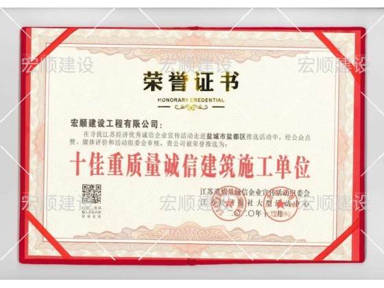 十佳重質(zhì)量誠(chéng)信建筑施工單位